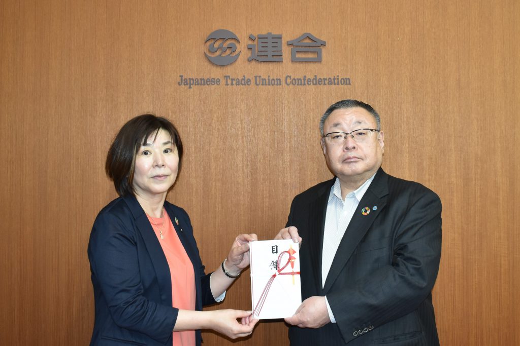 メーデーお米販売の売上金を連合令和6年能登半島地震救援カンパへ寄付