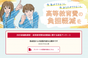 すべての人が学べる社会へ 高等教育費負担軽減プロジェクトが「2025参議院選挙・高等教育費負担軽減に関する政党アンケート」の結果を公表