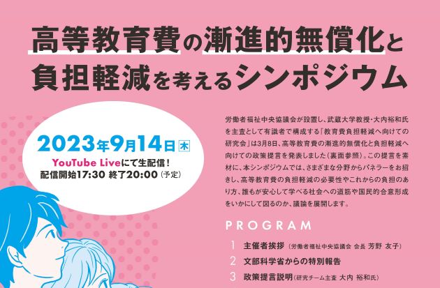 「高等教育費の漸進的無償化と負担軽減を考えるシンポジウム」を開催します!