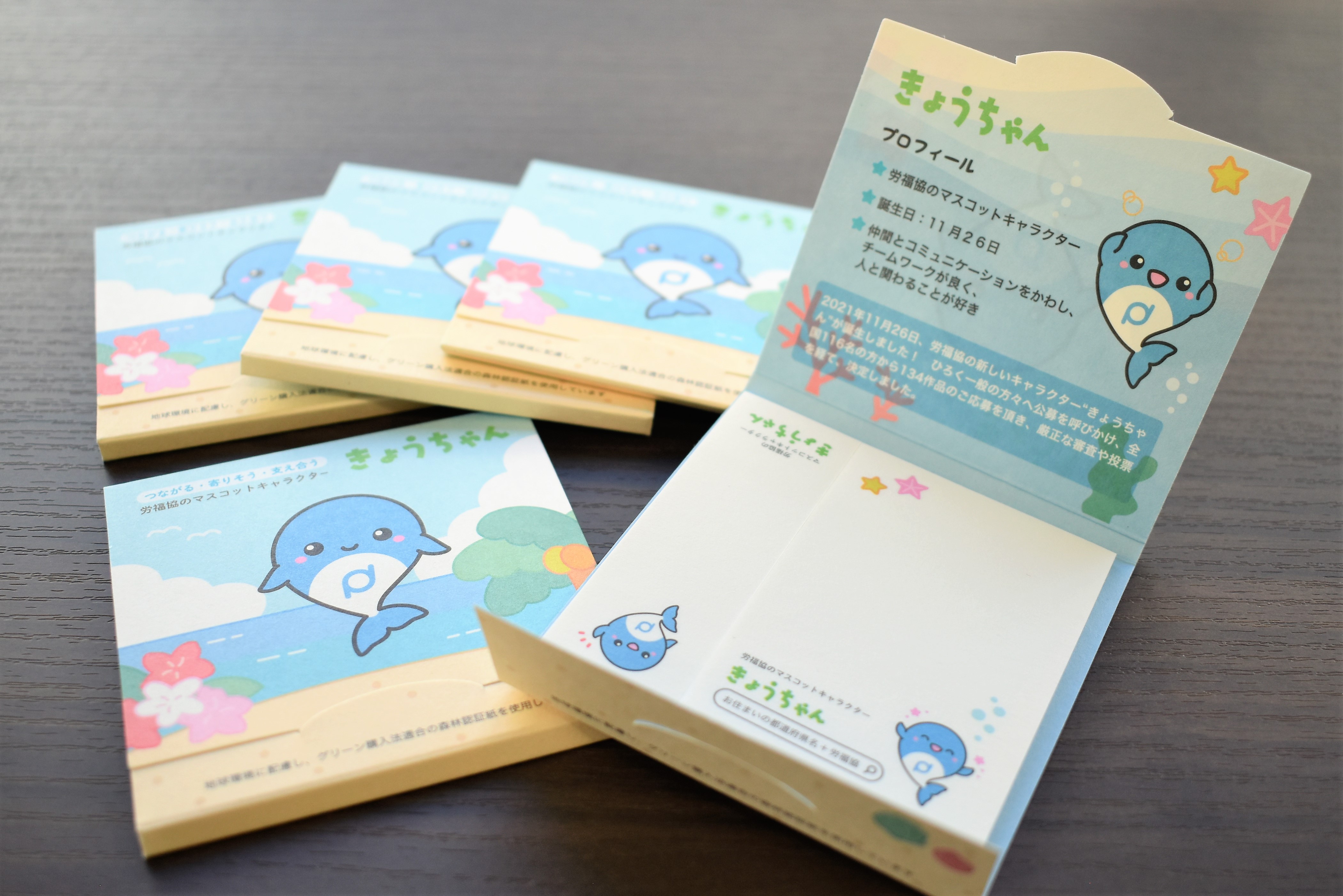 その後、厳正な審査や投票、イラストレーターやデザイナーからの講評などを経て、福岡県在住の江﨑 芙美さんにご応募頂いたキャラクター原案“きょうちゃん” を採用することに決定しました。そしてプロによるブラッシュアップなどを行ったのち、2021年11月26日に開催の中央労福協第65回定期総会の場で晴れて誕生しました!