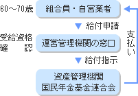 運営管理機関を通じて申請してください。運営管理機関では受給資格などを確認して、「企業型年金」の場合は資産管理機関に、また「個人型年金」の場合は国民年金基金連合会に支払うよう指示を出します。