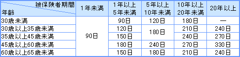 基本手当日額の下表の区分に応じた日数分が、一時金として支給されます。