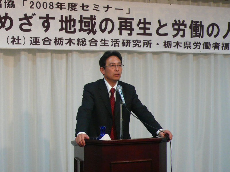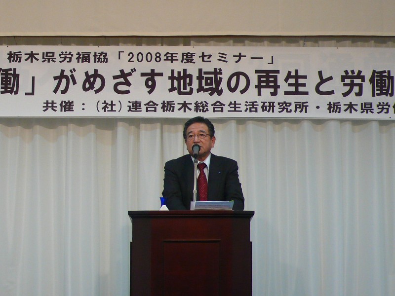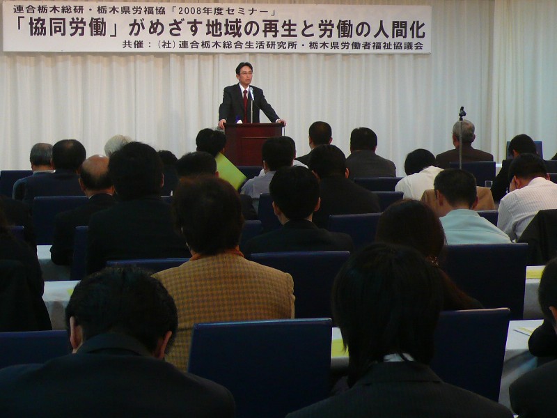 労福協・連合栃木総研共催による2008年度セミナ-が、日本労働者協同組合連合会・古村伸宏氏を講師に招き、「協同労働」がめざす地域の再生と労働の人間化-「協同労働の協同組合」法制化の可能性・展望-について、12月10日宇都宮市アピアにおいて開催された。