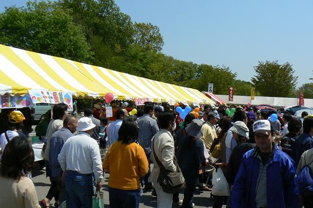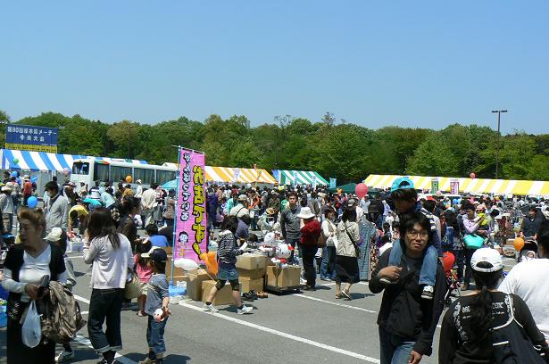 開催当日は、天候にも恵まれ、一般参加者とメーデ―の参加者で会場は賑わい、エアージャンポン・ミニSLに乗車する人たちや可愛い動物との触れ合いで喜ぶ子供達で賑わうとともに、生鮮野菜の買出し、フリーマーケット場での掘り出し物を探す人達で一日楽しく過ごしていただきました。