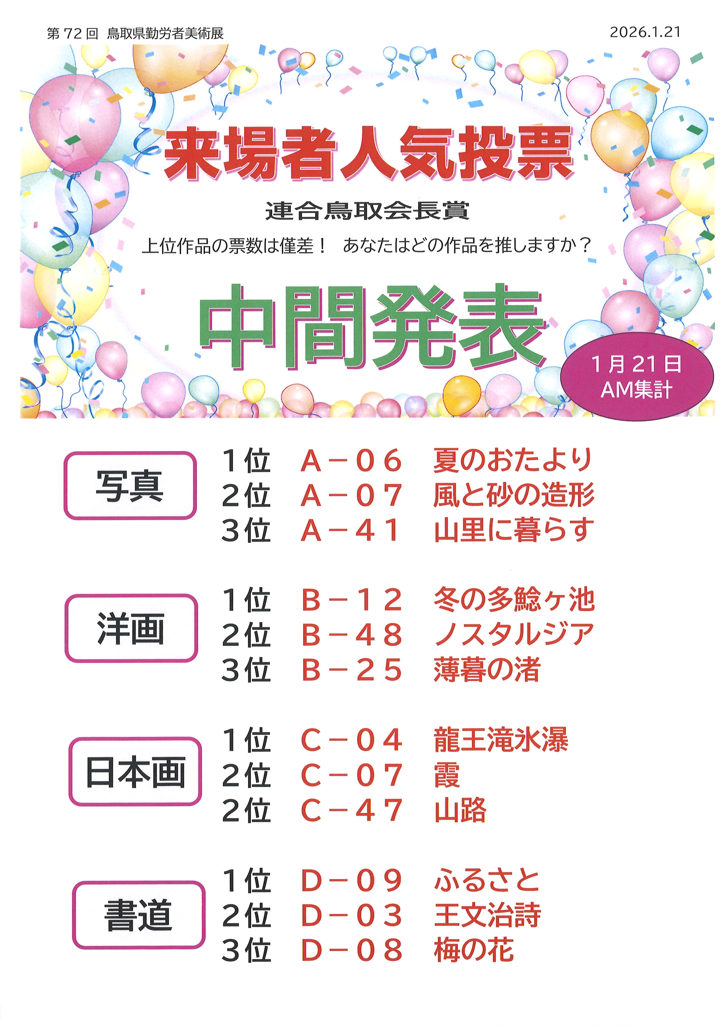 第72回勤労者美術展【来場者人気投票】中間発表! |