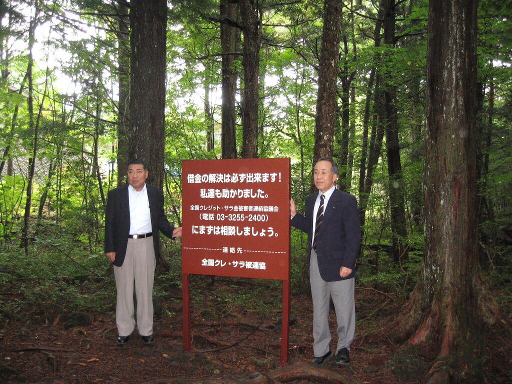 | 静岡労福協平野会長より山梨労福協田中会長への引き継ぎ式 富岳風穴(青木が原樹海) |