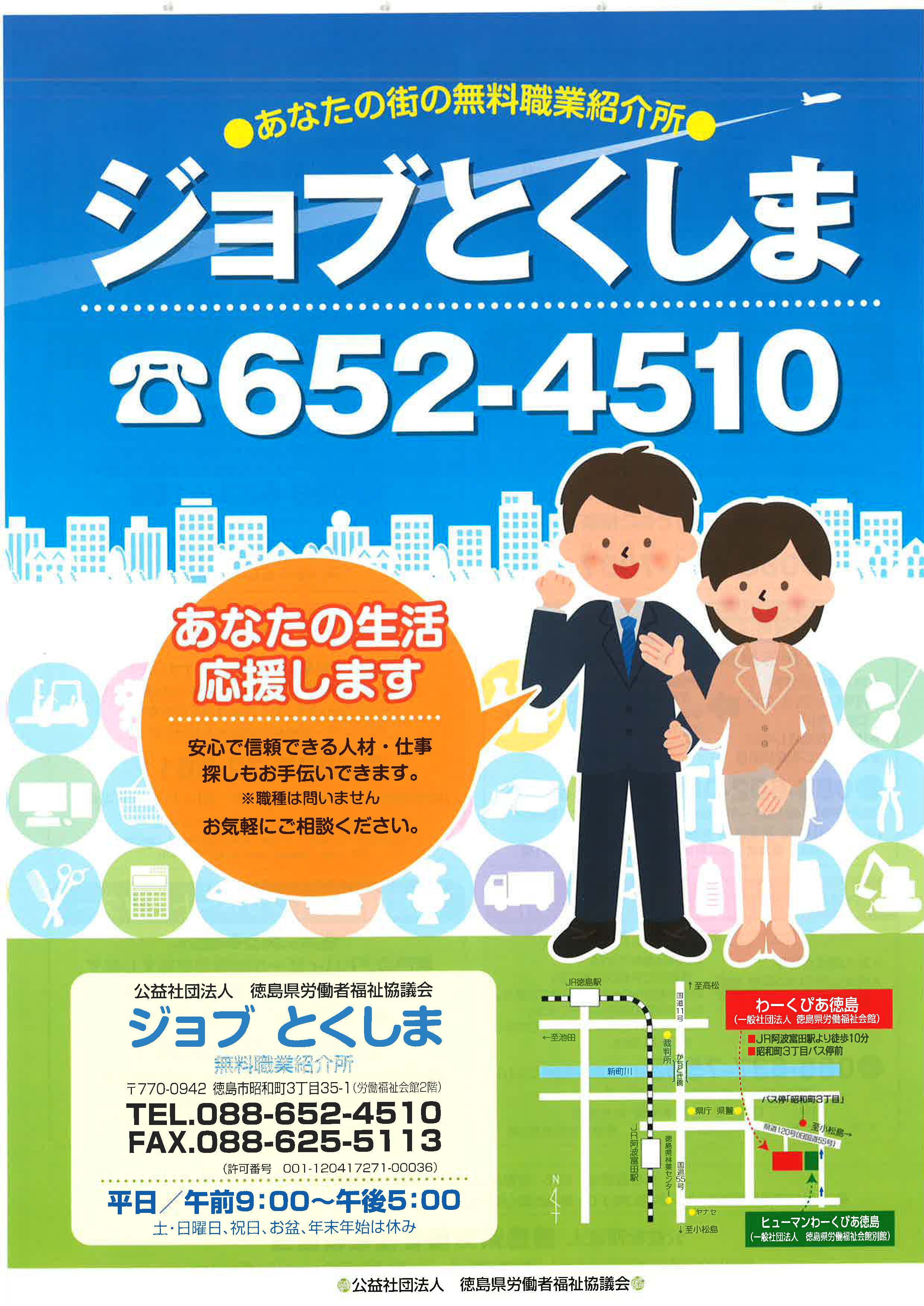 民営無料職業紹介所『ジョブとくしま無料職業紹介所』