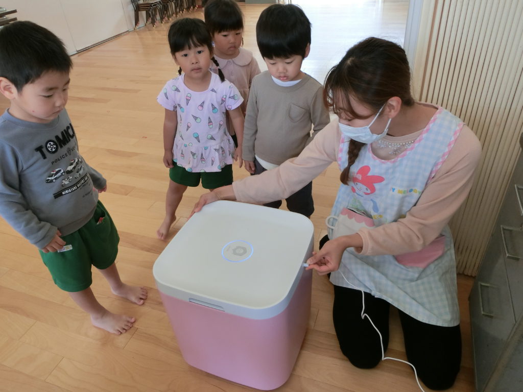 そこで4園で話し合い、全教職員103名分の不織布マスク及び子ども達が毎日使うおもちゃのUV除菌ボックスをお願いしたところです。