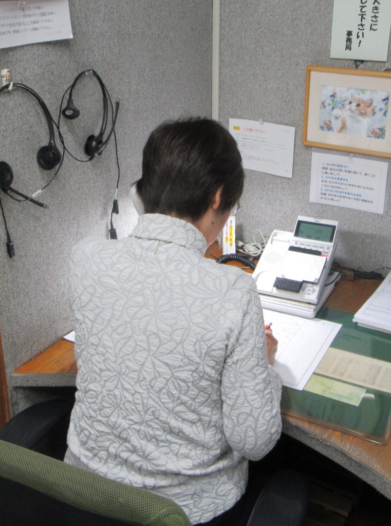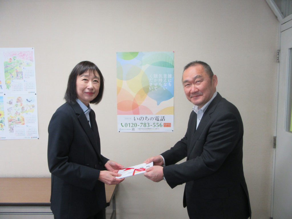 12月5日に杉山理事長、紺野副理事長兼事務局長、斉木事務局次長、連合石狩地協吉田会長、山口事務局長の5名で「北海道いのちの電話」の事務局へ訪問し、杉山理事長から榊理事長へ寄贈いたしました。また、相談の状況も視察させていただきました。