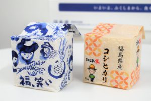お米は、福島県労福協を通じて、JA福島(JAパールライン福島株式会社)から仕入れを行い、福島県のブランド米である「福、笑い」と「福島県産コシヒカリ」の2つの銘柄を2合(300g)ずつ真空パックに詰めたセットを販売します。