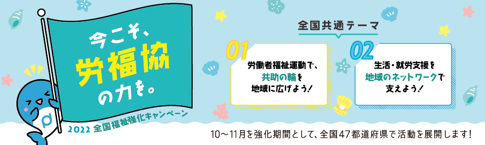 全国の労福協は10月~11月にかけて「2022全国福祉強化キャンペーン」の取り組みを展開中です。詳しくは下記ページをご覧ください。