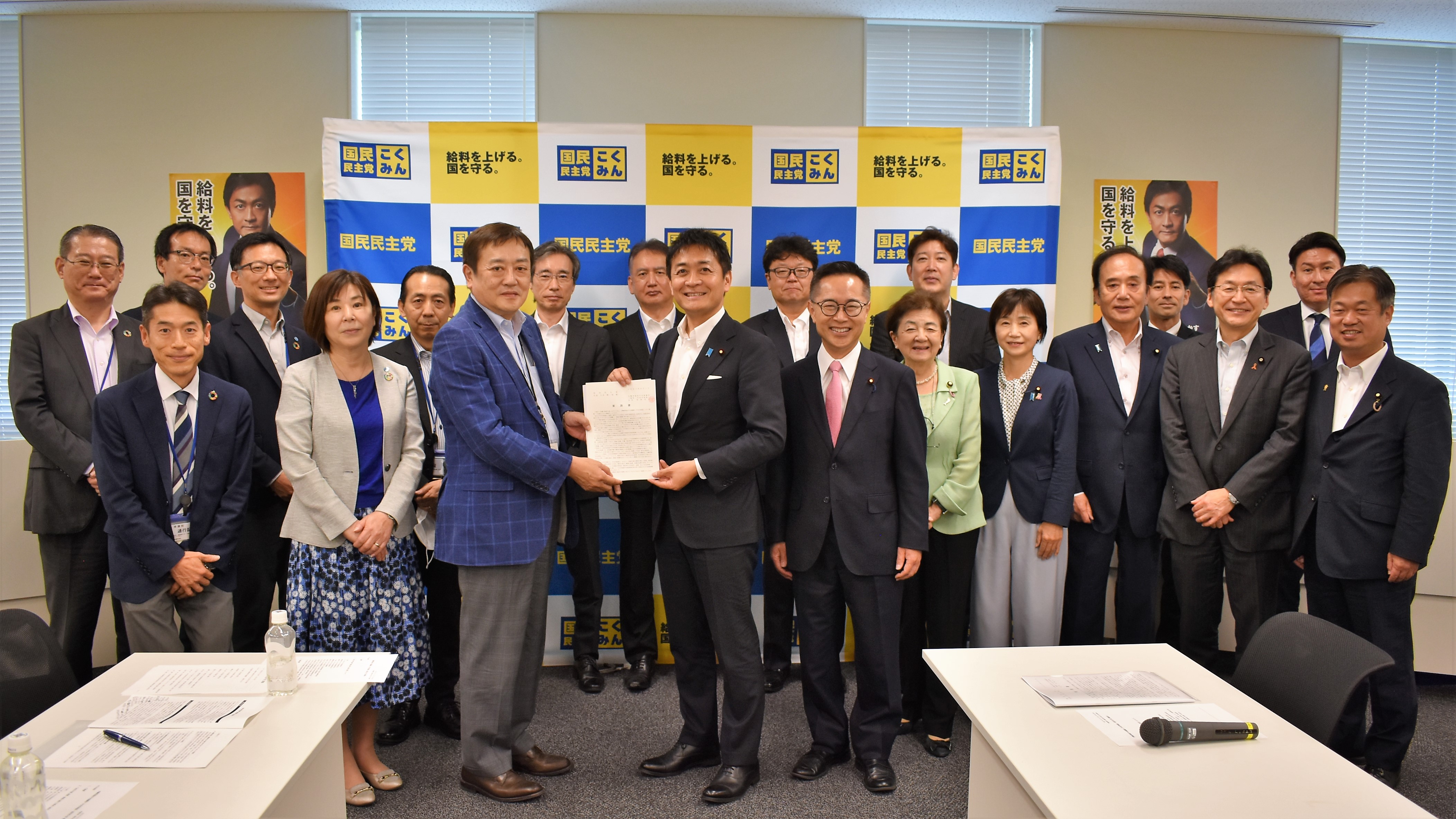 国民民主党からは玉木雄一郎代表、古川元久企業団体委員長、浅野哲議員、礒﨑哲史議員、伊藤孝恵議員、斎藤アレックス議員、竹詰仁議員、西岡秀子議員が出席するとともに、無所属の上田清司議員、嘉田由紀子議員が同席した。